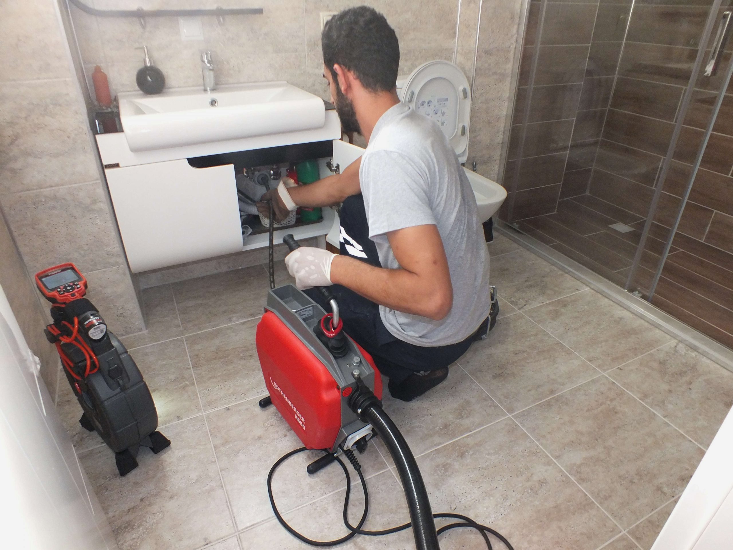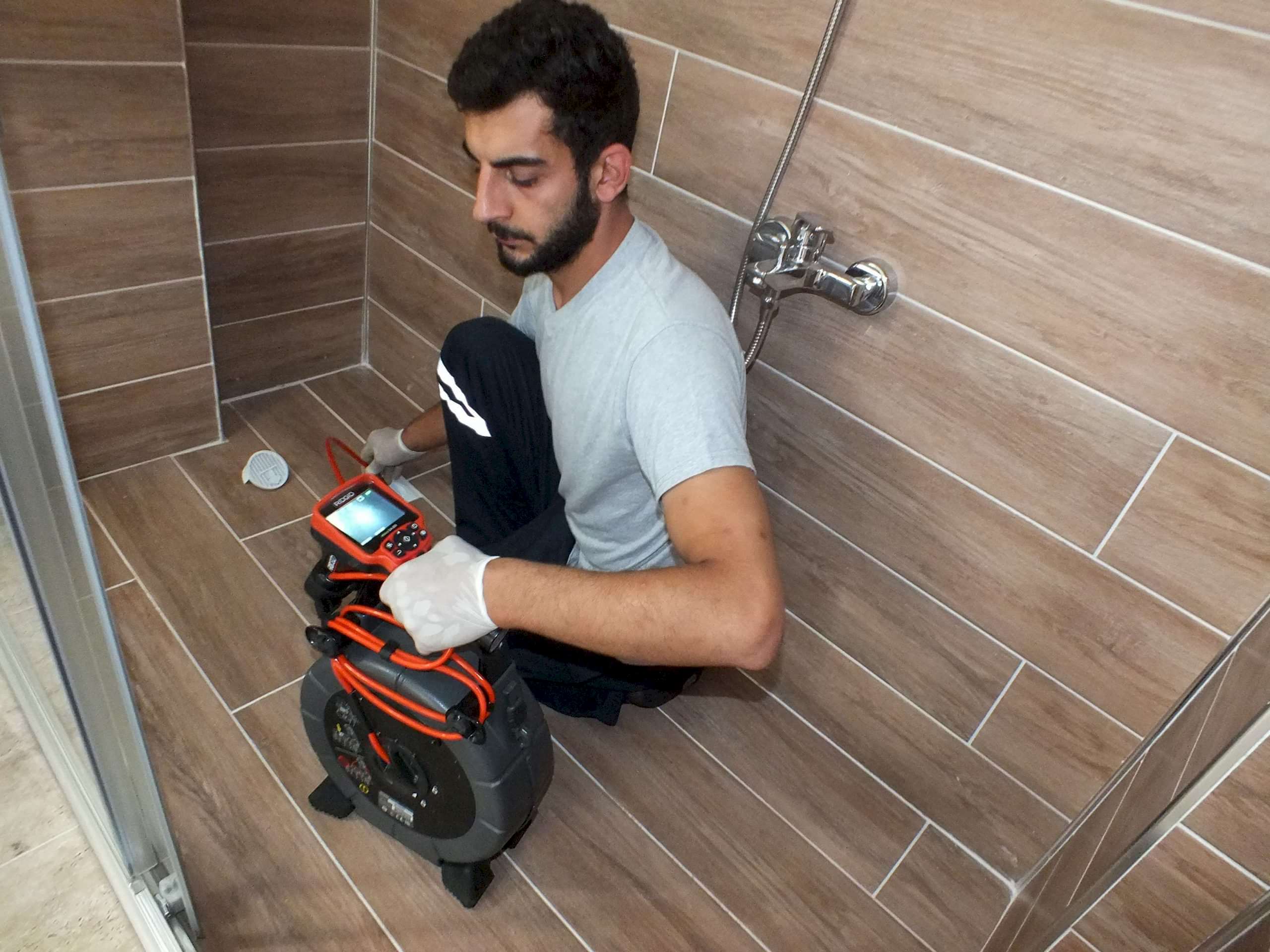 Kırmadan pimaş aç işlemini yapan tesisatçı ekiplerimiz, robot cihazla pimaş aç işlemini tamamladıktan sonra kameralı görüntüleme cihazını tekrar kullanmaktadırlar.